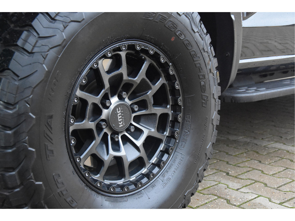 Deze is toch wel heel gaaf. Een supertoffe RAPTOR van '24 volledig in zwart met de goede opties. Extra tof want voorzien van een verstopte LEDbar achter de grille en hele stoere KMC wielen. Nog altijd wel in 17", maar met een agressievere offset. Het uiterlijke verschil is daarom groot! Hij heeft geen "werk" verricht en ziet er uit om door een ringetje te halen. Kortom fris zoals je hem zal willen.