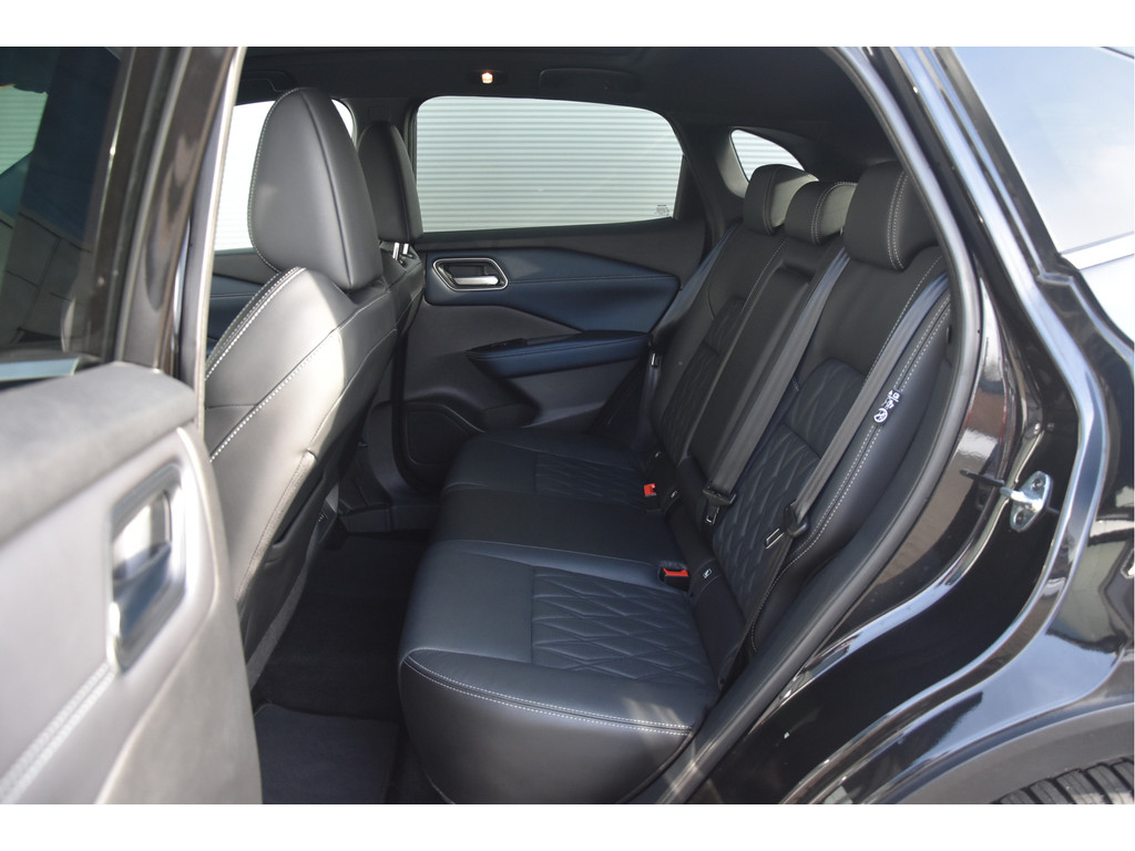 Dit is zo’n inruiler waar wij écht blij van worden. Een zwarte Nissan Qashqai in Tekna Plus uitvoering — en dat betekent: alles wat erop kan, zit erop. Lees maar mee: volledig (Nappa) lederen interieur, stoelverwarming, stuurverwarming, voorruitverwarming, stoelmassage, en geheugen op de bestuurdersstoel (te koppelen aan een bestuurdersprofiel en/of afstandsbediening). En dan zijn we er eigenlijk nog niet eens…