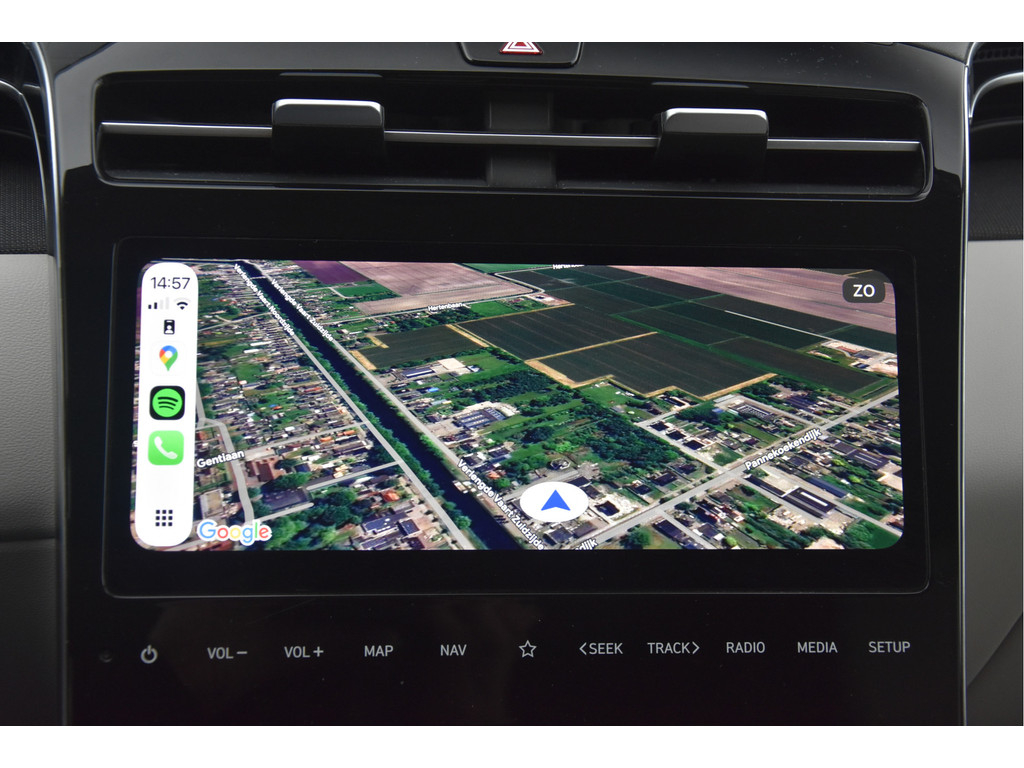 Dit is een gave Hyundai Tucson, vrijwel volledig full options, uitgevoerd in een prachtige en unieke kleurcombinatie: een stijlvol grijs-groen exterieur met een ivoorkleurig interieur.