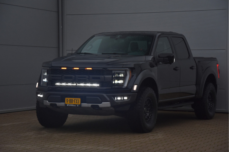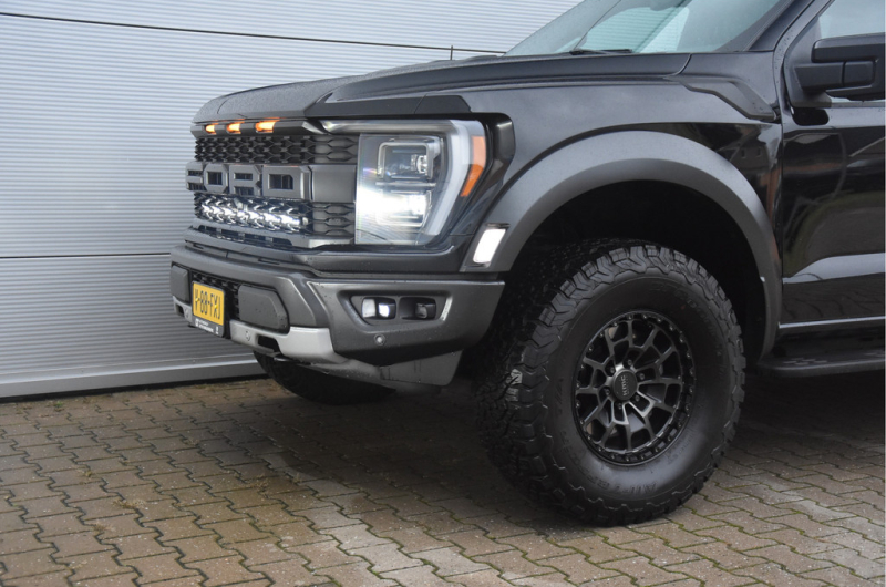 Deze is toch wel heel gaaf. Een supertoffe RAPTOR van '24 volledig in zwart met de goede opties. Extra tof want voorzien van een verstopte LEDbar achter de grille en hele stoere KMC wielen. Nog altijd wel in 17", maar met een agressievere offset. Het uiterlijke verschil is daarom groot! Hij heeft geen "werk" verricht en ziet er uit om door een ringetje te halen. Kortom fris zoals je hem zal willen.