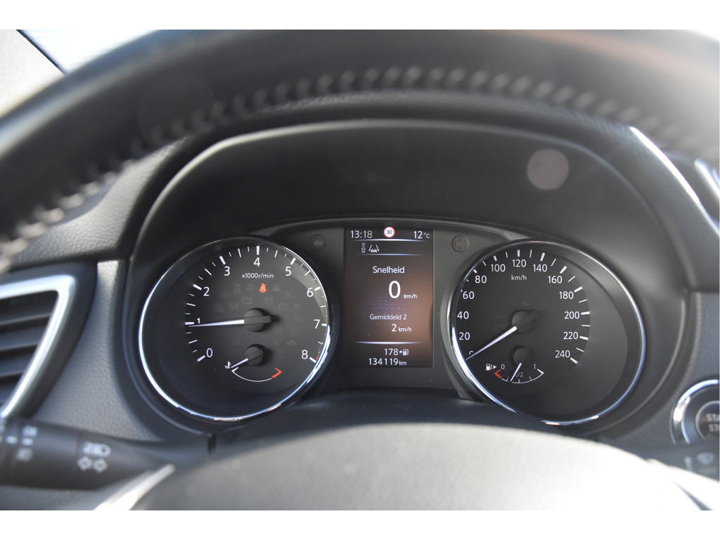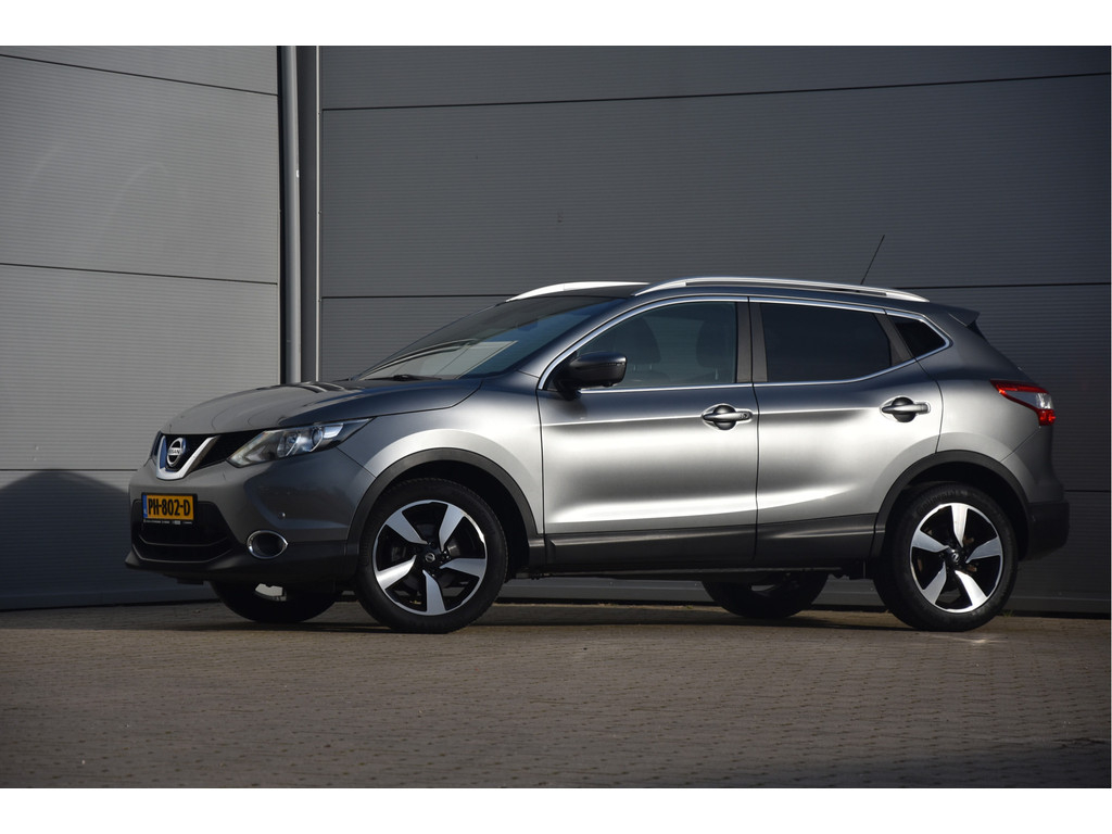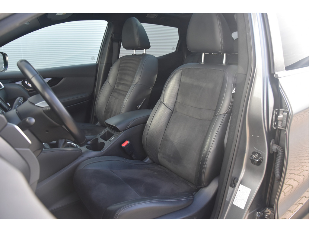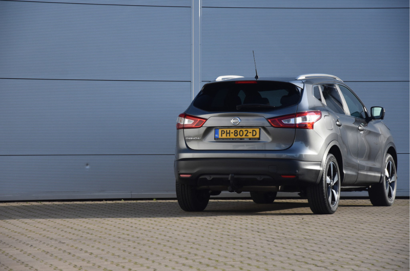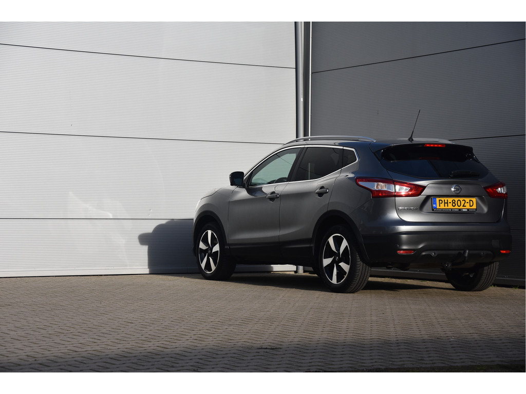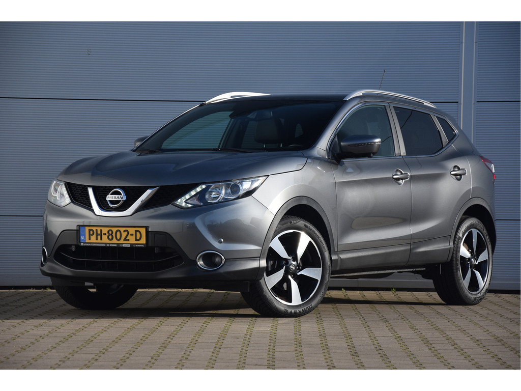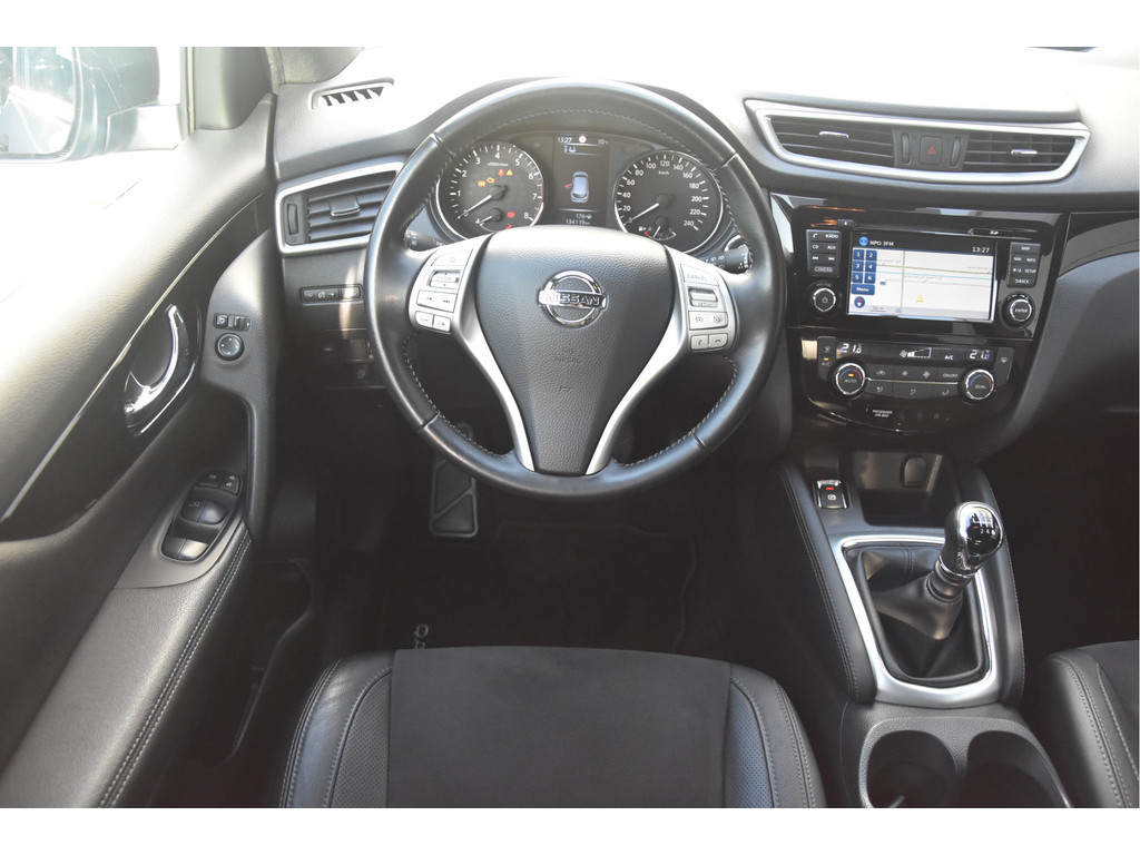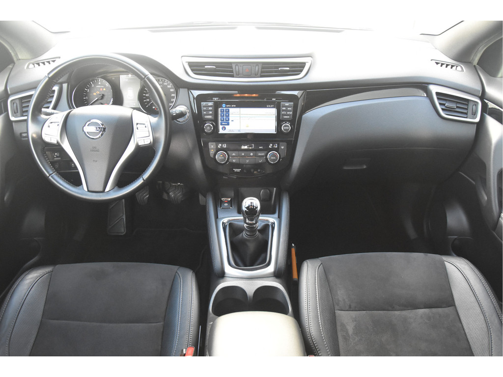 Deze is tof! Een écht frisse Qashqai met een voor haar leeftijd nog goede kilometerstand in een N-Vision uitvoering. De meeste Qashqai's hebben stoffen of volledig lederen bekleding, maar deze heeft een combinatie van alcantara en leer. Dat zit heel prettig en ziet er fraai uit! Omdat het een Qashqai met Design Pack betreft heeft hij ook een panoramadak, dakrails en donkere hemelbekleding. Dat geeft net even een intiemere sfeer in de auto dan lichtgrijs. Deze auto is zo eentje van altijd goed schoongehouden en goed verzorgd zowel op technisch als op optisch vlak. Dat ademt de auto dan ook! Door het goede verleden heeft de auto dan nog een goede toekomst!