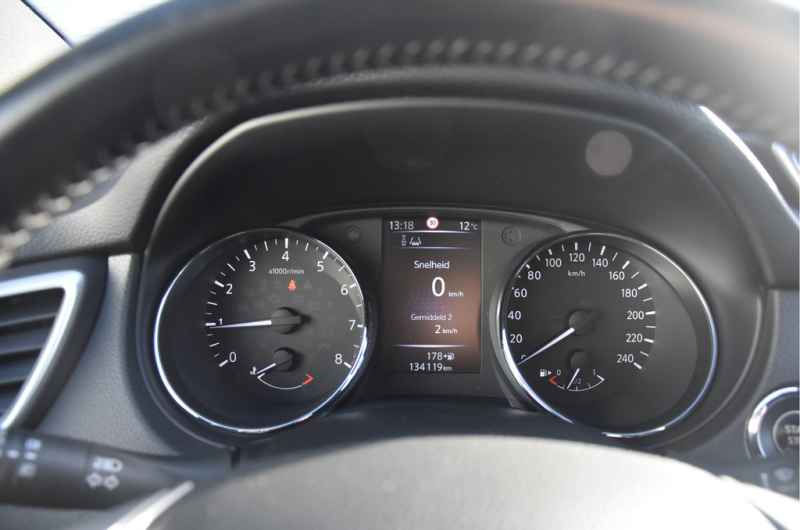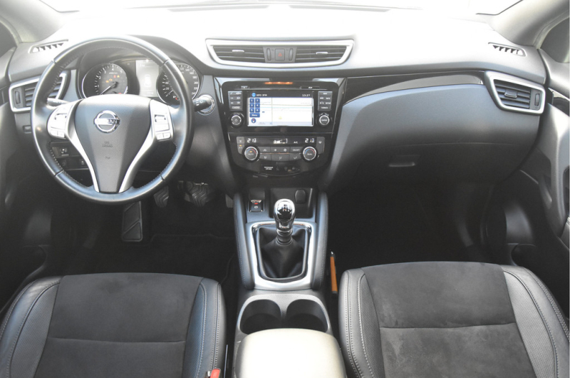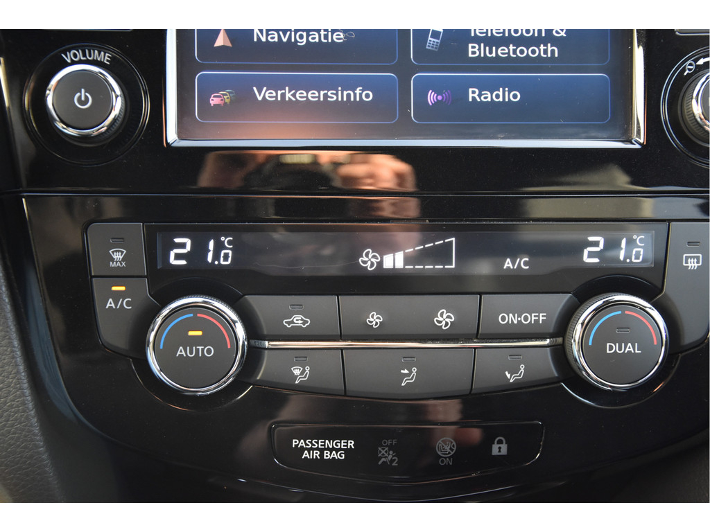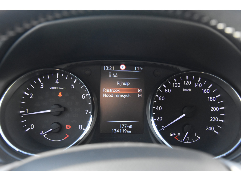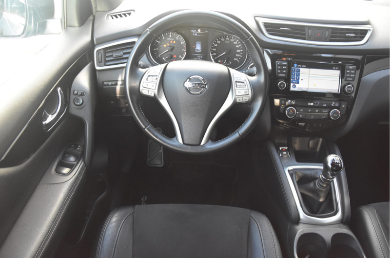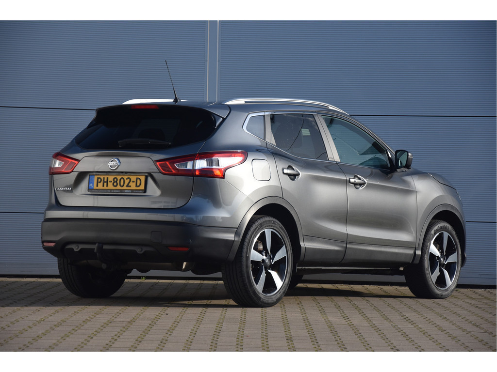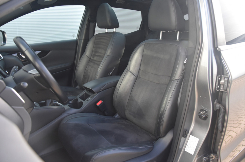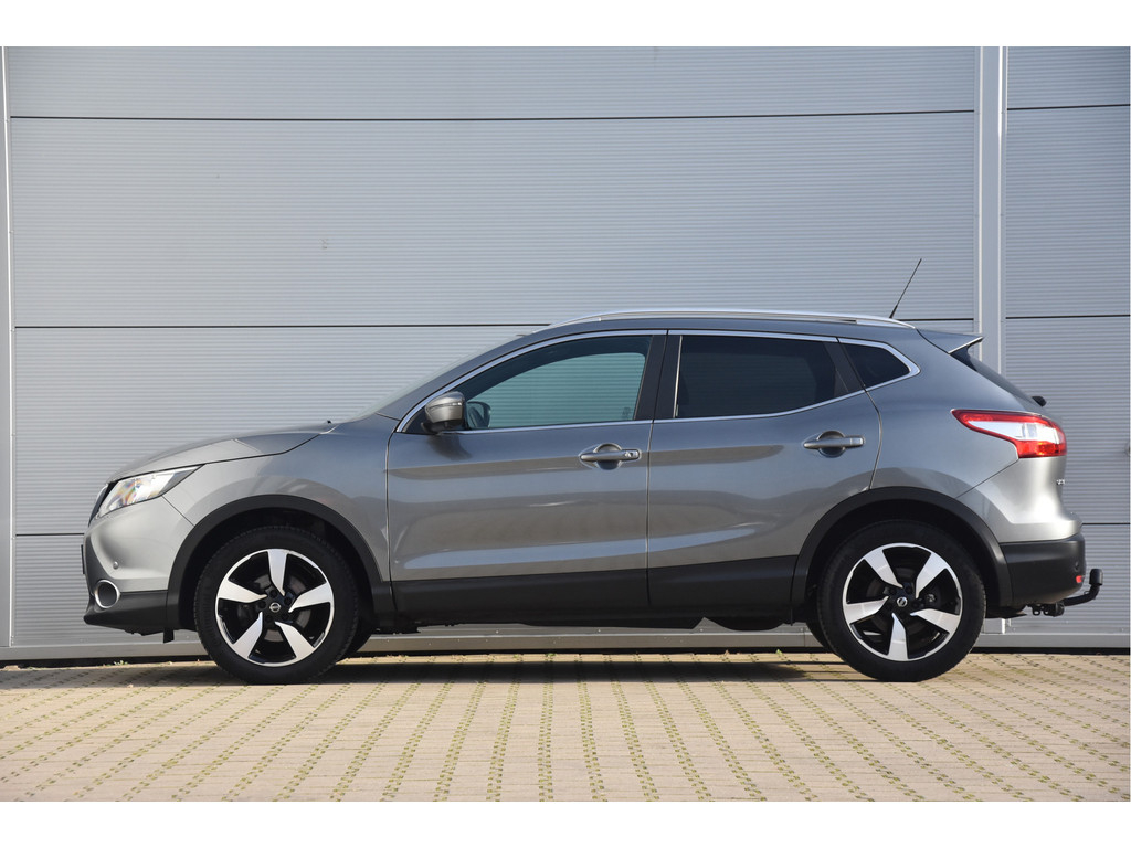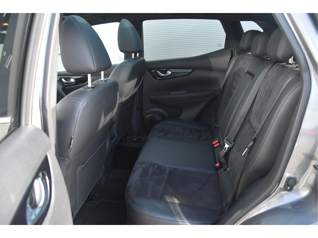 Deze is tof! Een écht frisse Qashqai met een voor haar leeftijd nog goede kilometerstand in een N-Vision uitvoering. De meeste Qashqai's hebben stoffen of volledig lederen bekleding, maar deze heeft een combinatie van alcantara en leer. Dat zit heel prettig en ziet er fraai uit! Omdat het een Qashqai met Design Pack betreft heeft hij ook een panoramadak, dakrails en donkere hemelbekleding. Dat geeft net even een intiemere sfeer in de auto dan lichtgrijs. Deze auto is zo eentje van altijd goed schoongehouden en goed verzorgd zowel op technisch als op optisch vlak. Dat ademt de auto dan ook! Door het goede verleden heeft de auto dan nog een goede toekomst!