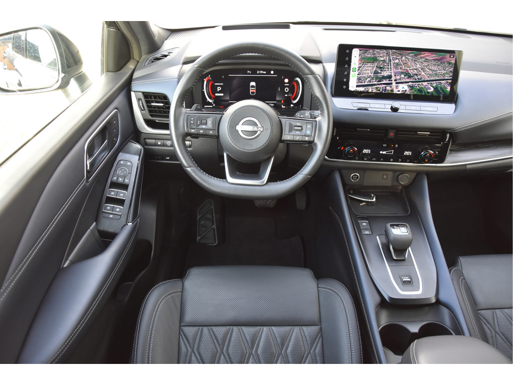 Dit is zo’n inruiler waar wij écht blij van worden. Een zwarte Nissan Qashqai in Tekna Plus uitvoering — en dat betekent: alles wat erop kan, zit erop. Lees maar mee: volledig (Nappa) lederen interieur, stoelverwarming, stuurverwarming, voorruitverwarming, stoelmassage, en geheugen op de bestuurdersstoel (te koppelen aan een bestuurdersprofiel en/of afstandsbediening). En dan zijn we er eigenlijk nog niet eens…