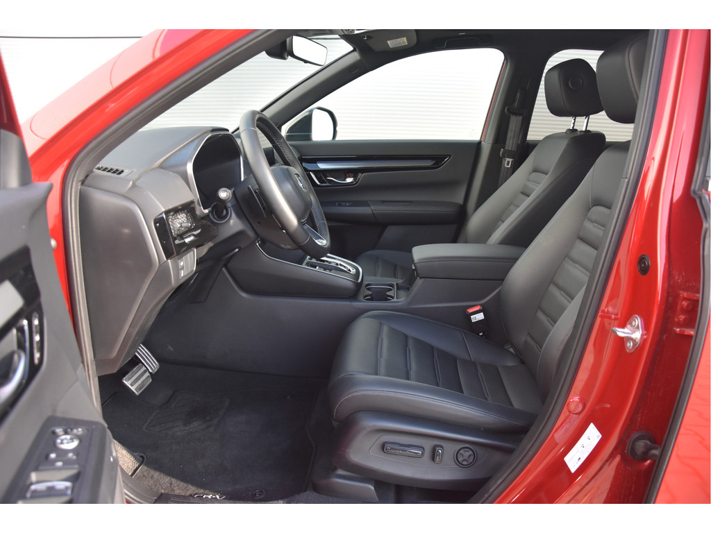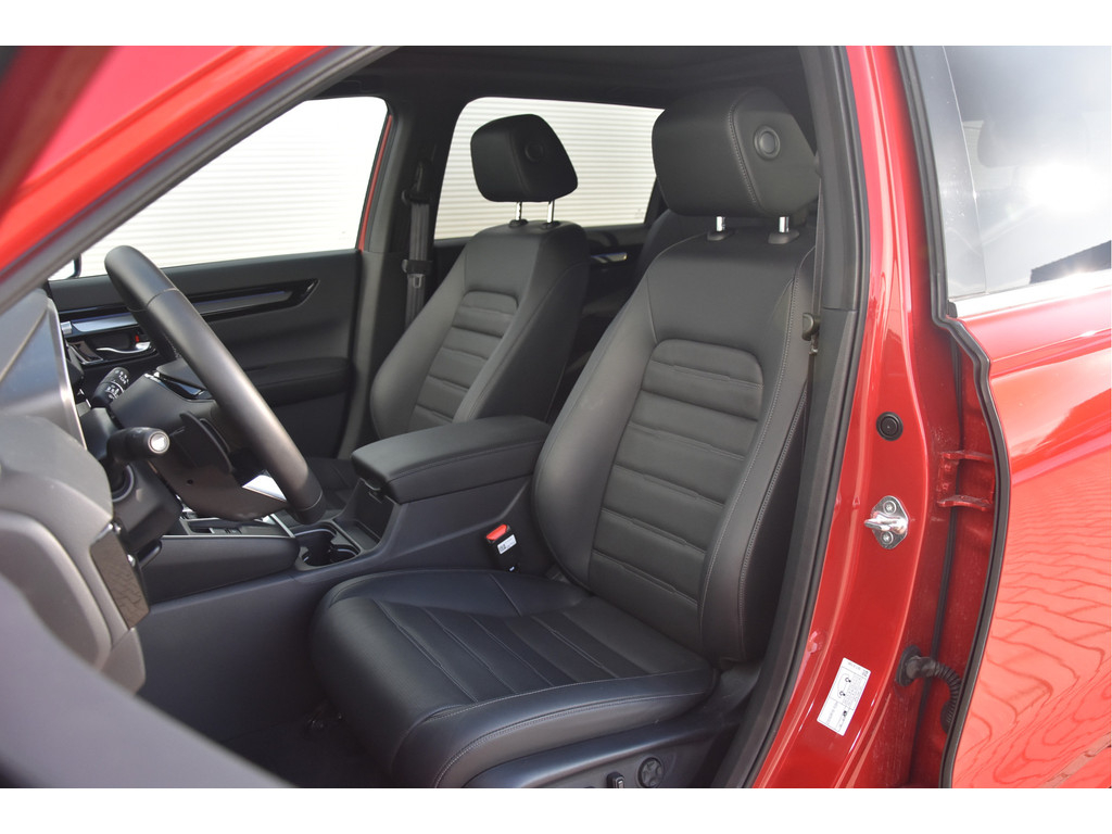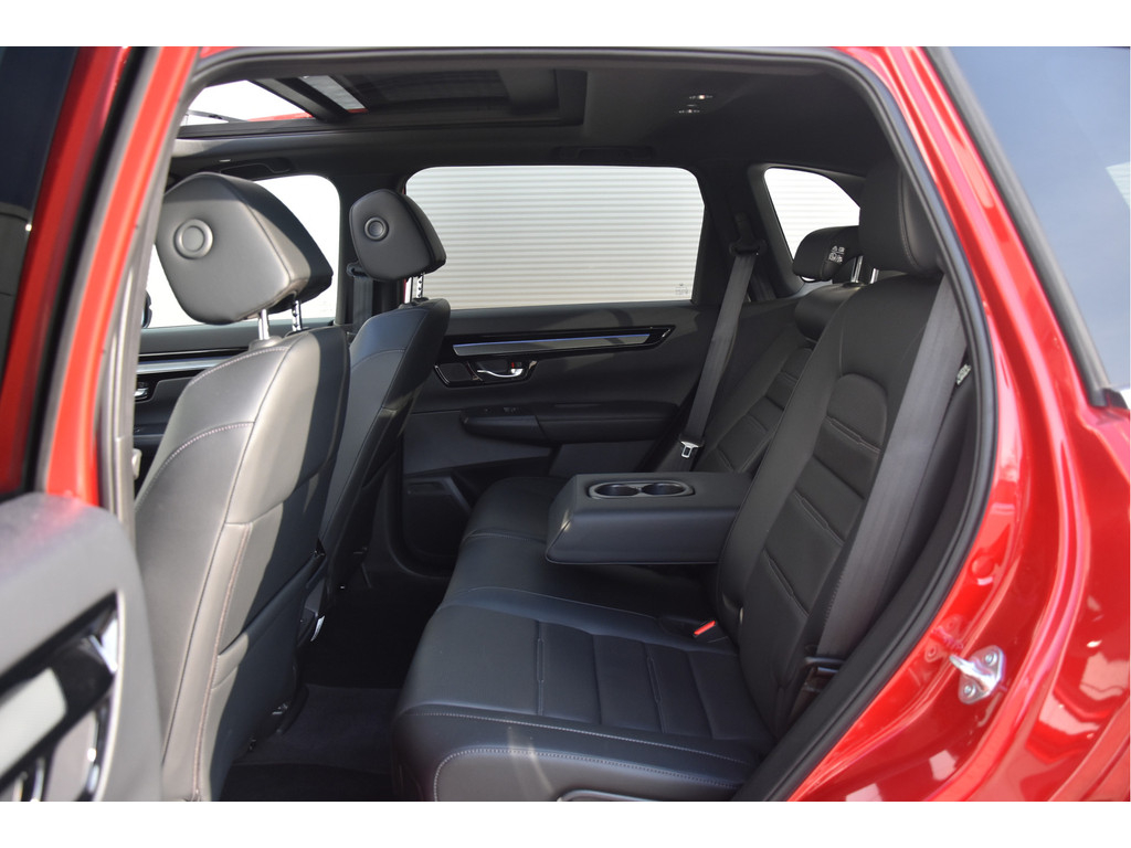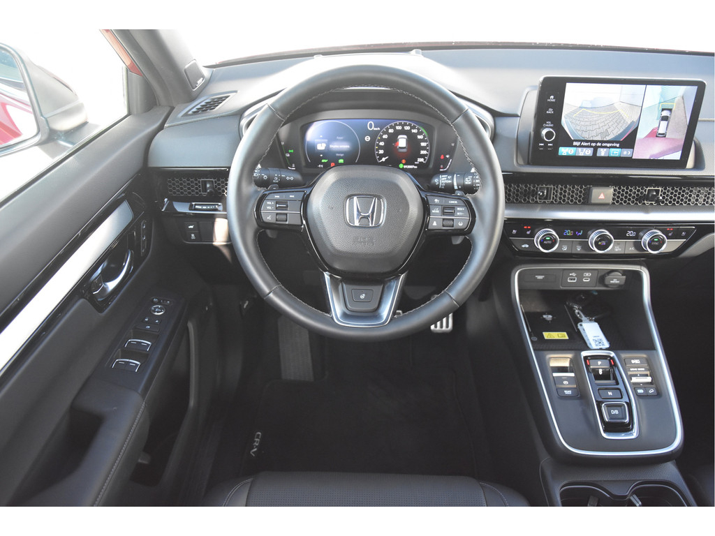 Honda heeft met deze CR-V helemaal de smaak te pakken. Prachtige techniek in een nog mooier jasje! Het is een Plug in Hybride met een royaal elektrisch rijbereik van zo'n 60 tot 80 km en als de accu leeg is heb je alsnog een zuinige hybride auto. Hij mag maarliefst 1500 kg trekken, en veel ruimere (en verwarmde!) achterbanken hebben wij de laatste tijd niet vaak gezien. Verder zit hij heel goed in zijn spullen: Makkelijke parkeer en dode hoek camera's, stoelventilatie, elektrische achterklep, lederen bekleding en Bose Audio. Veel meer kon er trouwens ook niet op.